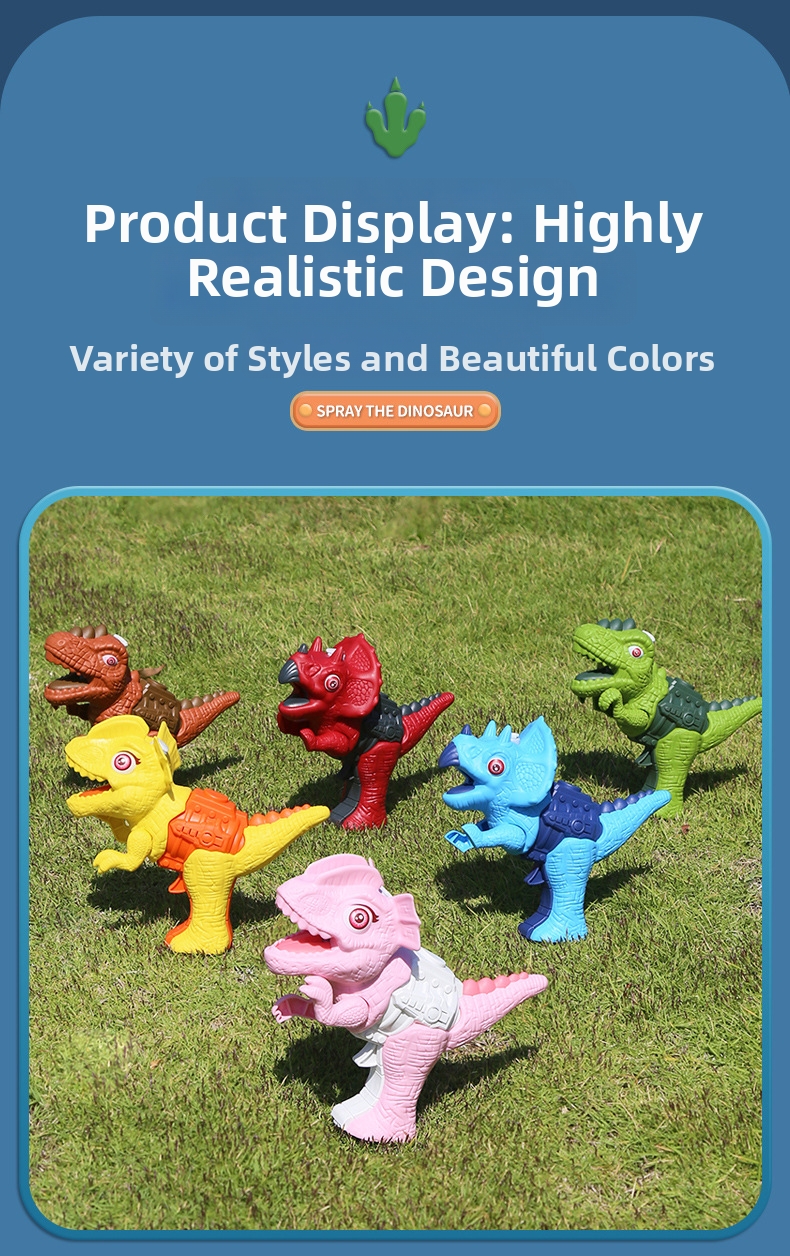 • Soft, Cooling Mist: Squeeze the trigger to release a fine, gentle mist (no strong streams!) — ideal for beating the heat or pretending your dino is breathing “misty roars.”