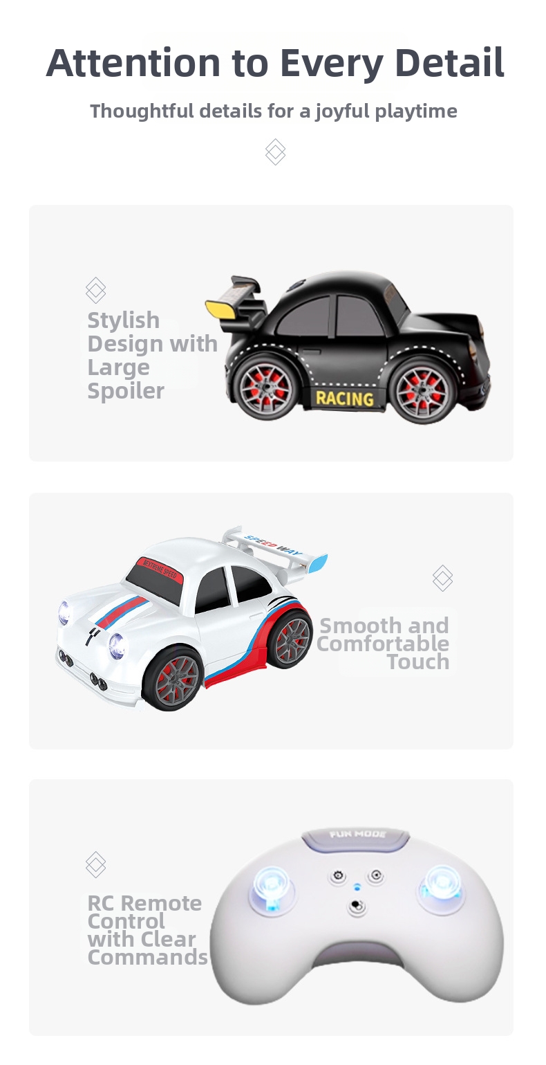 Turn ordinary moments into playful adventures. This mini RC car isn’t just a toy—it’s joy in motion (for hours on end!).