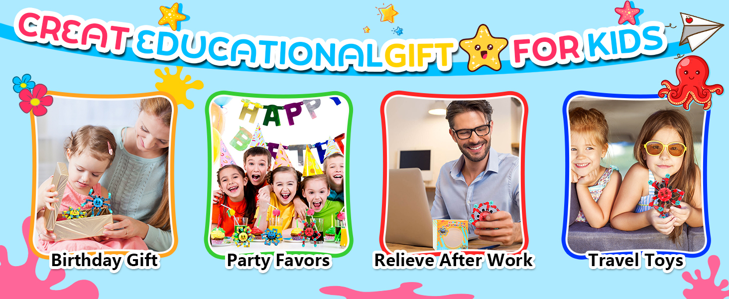 The perfect gift for all ages and occasions 🎁 —these fidget toys bring joy to children 👧👦 and adults 👨👩 alike. It lets you, your family 👨‍👩‍👧‍👦, friends 👭, classmates 📚, and colleagues 👔 enjoy your leisure time! This fidget toy is easy to share and makes an ideal Valentine's Day gift ❤️, Easter basket essential 🐰, kids' Easter basket item 🎋, party favor 🎈, classroom prize 🎉, preschool classroom staple 🎓, Halloween gift 🎃, and stocking stuffer 🧢. It's the best gift choice for children and adults alike.