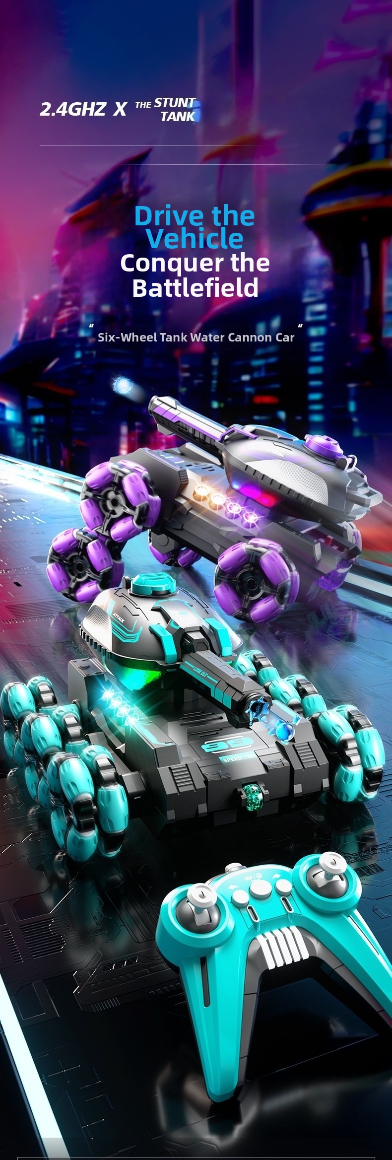 💥Remote-Controlled Tank Six-Wheel Stunt Vehicle